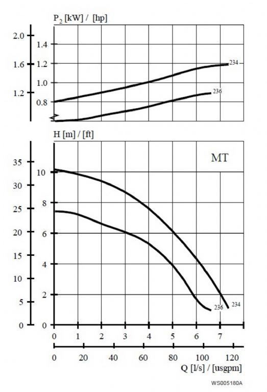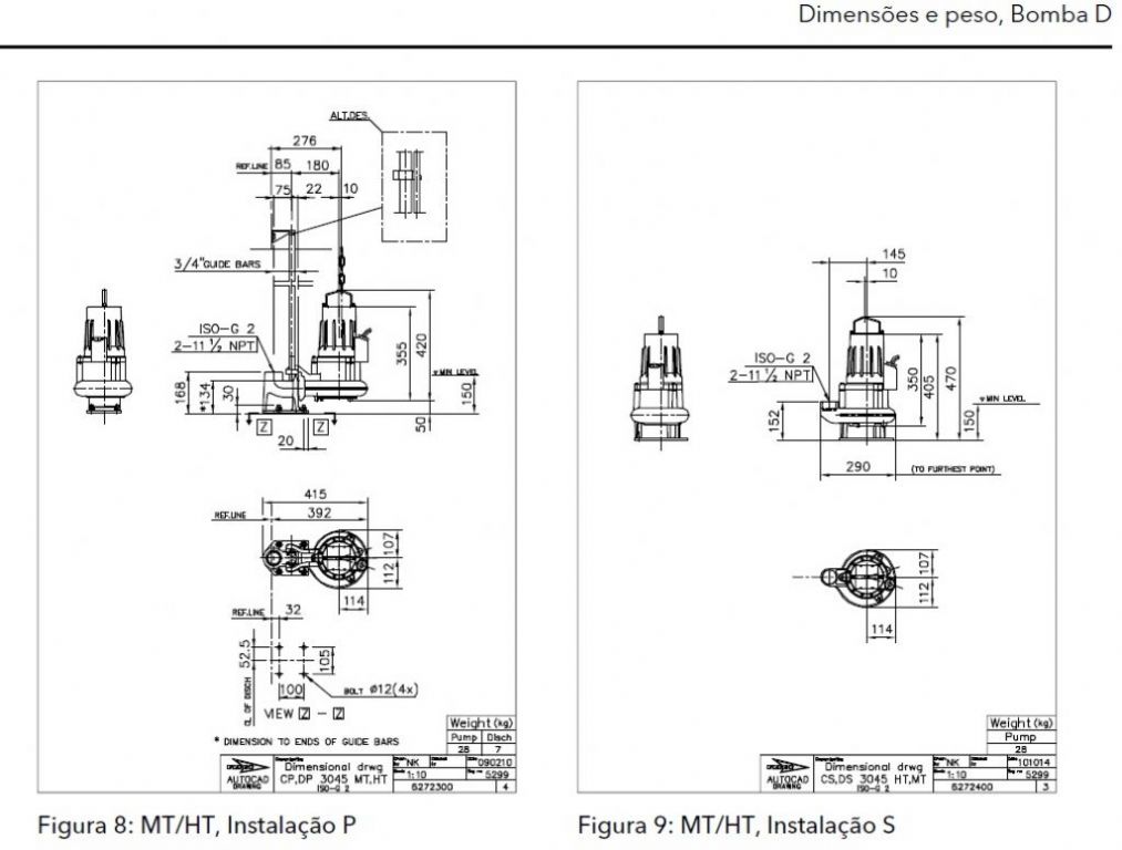Opção de instalação portátil tipo S ou semipermanente em poço úmido tipo P com pedestal e tubos guia